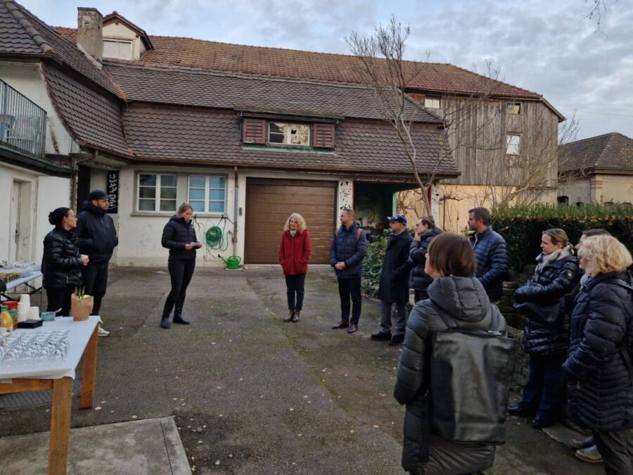 Im Anschluss führte Betriebsleiterin Michèle-Jana Ryf die Gäste durch die Geschichte und aktuellen Erfolge und Herausforderungen des Betriebs: «Unser Haus hat seit 2005 viel erlebt – und wir mit ihm. Vom Brand 2008 über die Professionalisierung des Betriebs bis hin zu wachsenden Anforderungen und komplexeren Problemlagen unserer Klient*innen. Gleichzeitig zeigen die Vollbelegung und die Warteliste klar: Der Bedarf nach einem solchen Wohnangebot ist gross.»